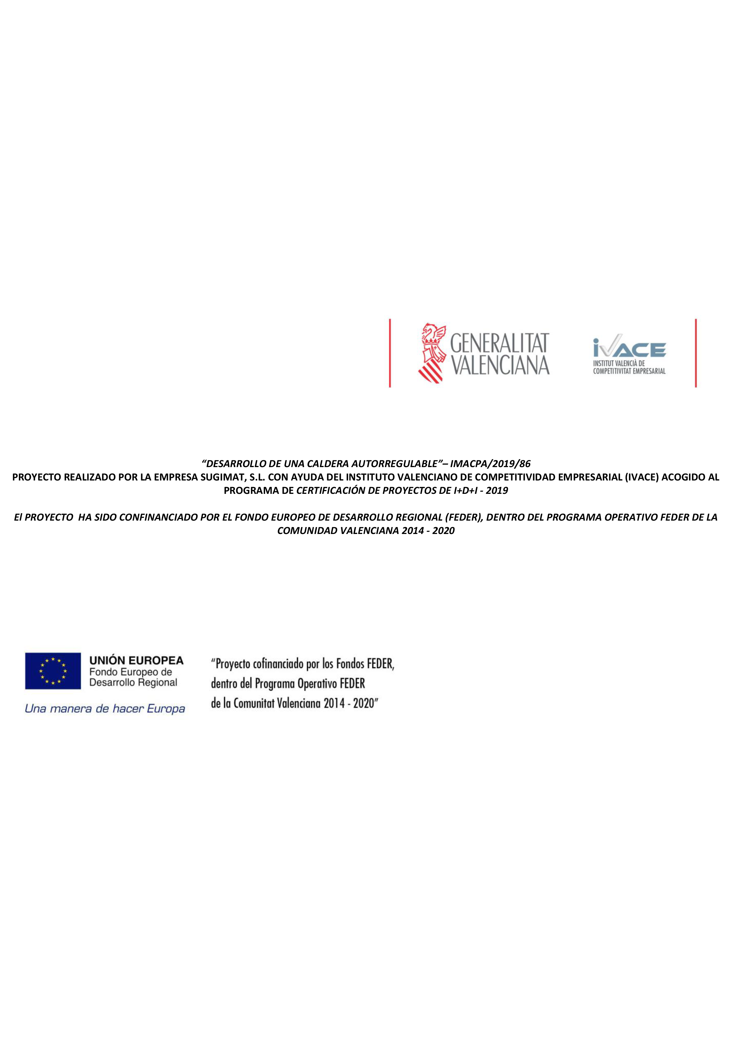 Sugimat receives again two subsidies promoted by the Valencian Institute of Business Competitiveness (IVACE) to reward its commitment to innovation and technological development. Both projects, each focused on the development of a self-regulating boiler and a water-tube boiler, respectively, have been co-financed by the European Regional Development Fund (ERDF), within the ERDF Operational Programme of the Valencian Community 2014-2020.